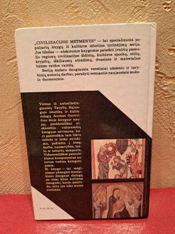 1989m. Aronas Gurevičius, knygoje aiškina svarbaus pasaulio istorijos tarpsnio - vidurinių amžių - dvasinės kultūros bruožus. Autorius analizuoja feodalizmo epochos žmogaus vaizdinius, idėjas ir vertybes, atskleidžia jo pasaulėvaizdžio ir pasaulėjautos sudėtingumą, lygina viduramžių kultūros kategorijas su antikos ir šiuolaikinės kultūros kategorijomis. Šioje knygoje naujai, problematiškai atskleidžia viduramžių žmogaus savimonę, kuri pasireiškia tam tikru erdvės ir laiko suvokimu, požiūriu į teisę, darbo