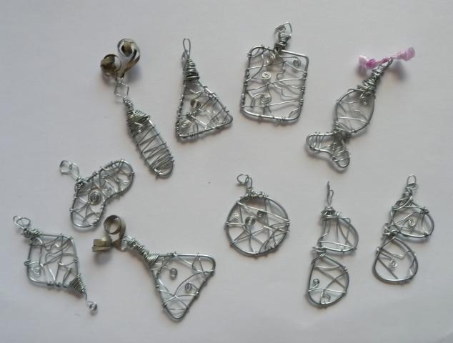 Rankų darbo vieliniai pakabukai.