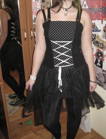 Dydis S-M. Mano pacios sugalvotas modelis ir siutas pas siuveja. Visiskai vienetine suknele. Vilkejau ja 2 kartus, neturi jokiu defektu. Labai graziai pabreza liemeni. Turi pora imitaciniu korsetiniu suvarstymu. Gaila, kad nuotraukos iki galo neatskleidzia, kaip graziai ji atrodo :) sysis S-M
