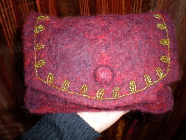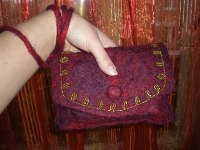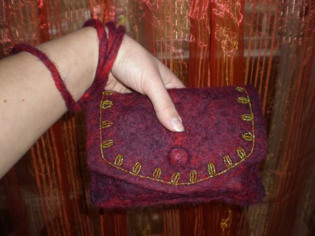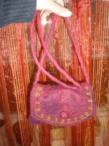 Veltinio rankinė, siuvinėta stiklo karoliukais. Ilga rankena, galima nešioti persimetus per petį.