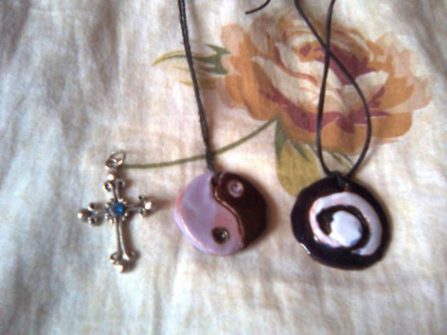 pirmas kryzelis su melyna akute, kiti du is molio su odinem virvutem...