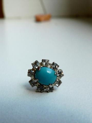 Auskaras su žydru viduriuku ir "deimančiukais". Parduodu, mainau, arba ieškau poros