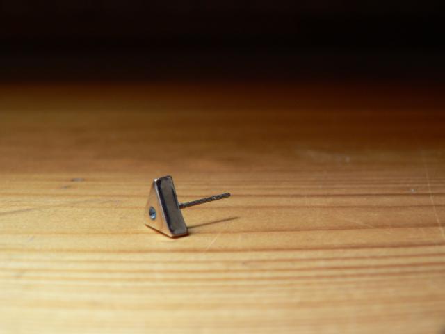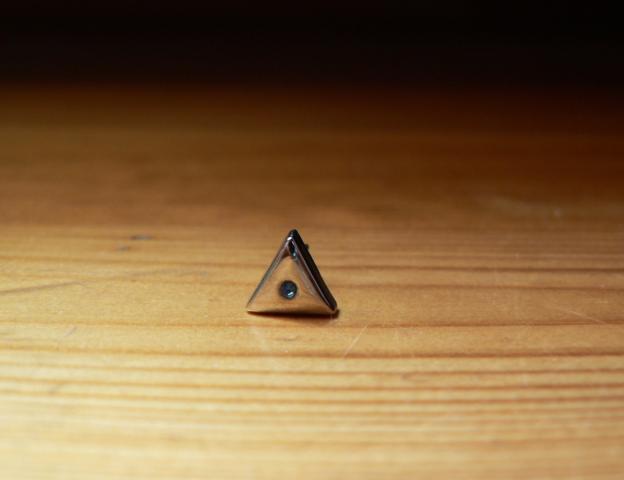 Sidabro spalvos trikampis auskaras su žydra akute.