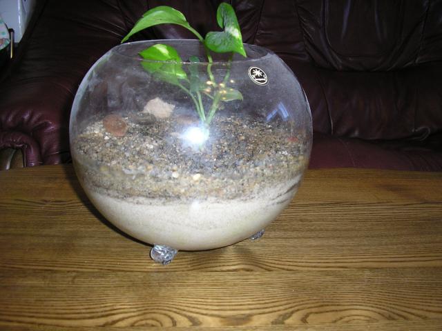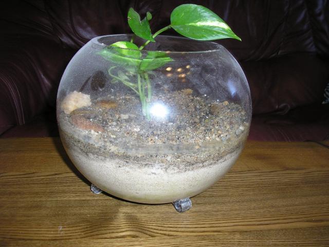 Vijokline gele su stikliniu indu. Indas tinkamas akvariumui :)