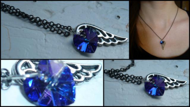 Žerintis kristaliukas, sendinto sidabro sparnas ir grandinėlė