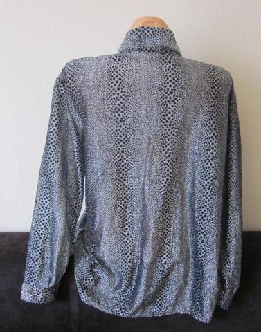 Žvilganti didelio dydžio palaidinė. Nors rašo 60 dydį, atitinka 50-52 dydį. Be defektų, dėvėta tik porą kartų. Išmatavimai: Ilgis 76 cm, krūtinės apimtis 63x2 cm, rankovės ilgis nuo peties linijos 62 cm, rankovės ilgis nuo pažasties 46 cm.