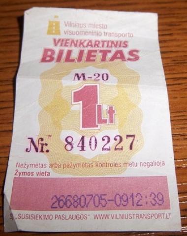 Bilietas tu laiku kai dar kainuodavo troleibuse 1 litą,bet gaila pažymėtas