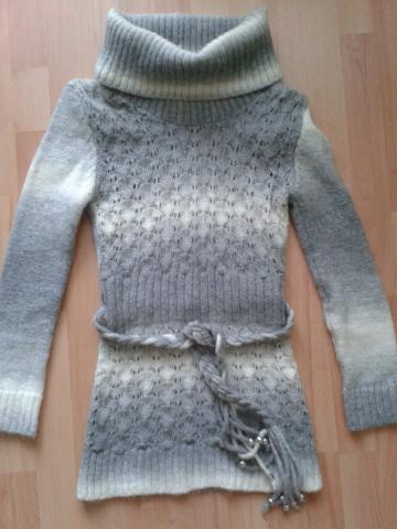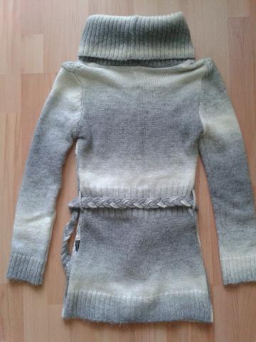 Geros būklės vilnonis megztukas, megztukas yra ilgesnis tad puikiai tinka nešioti prie timpų. Galima nešioti ir be dirželio. MAINAI NEDOMINA