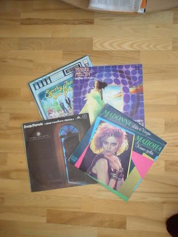 Lietuviškos ir angliškos vinilinės plokštelės.Jau nėra Foje ir Nelės Palitinienės, Wonderio, Madonos, Deep Purple.
