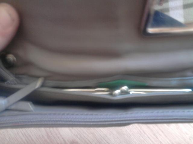 Yra viduje veidrodėlis, tokia piniginė, dar dirželis yra ilgas, galima prisisegti :)