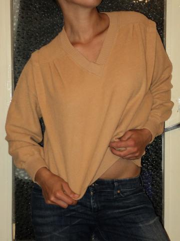 Tokios truputi pukuotos medziagos megztinis-dzemperis, nes jo medziaga tokia kaip dzemperiai buna:) turi sonuose dvi dideles kisenes.taip pat mamos laiku:)