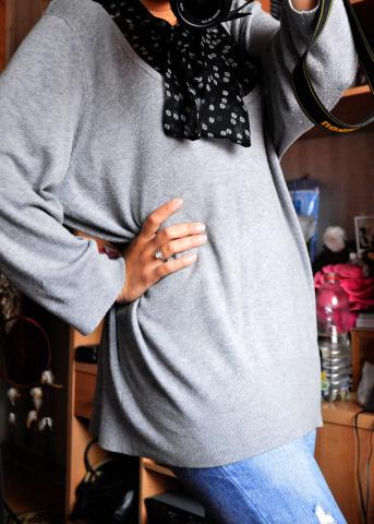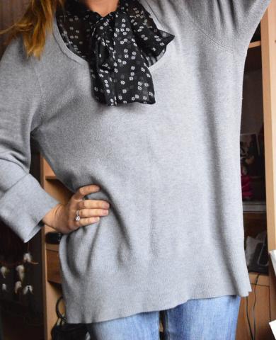 S dydžiui kaip nuotraukoje tinka gražiai apkritęs, bet galima nešioti ir M, L dydžiams laisvai :)