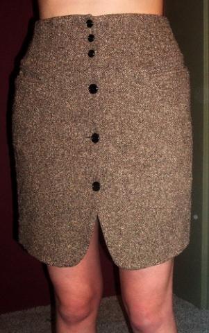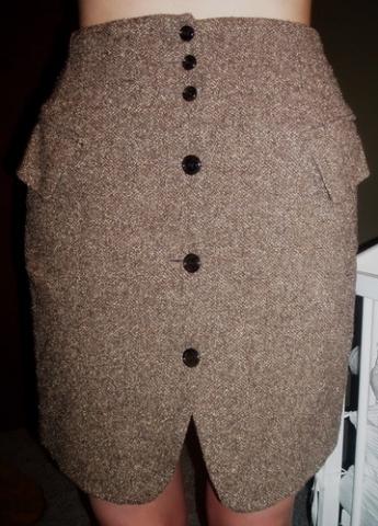 Dydis 36-38. Labai įdomus. Su pamušalu, aukštu liemeniu, šiek tiek virš kelių. Šonuose dvi kišenaitės, man nepatiko atvartukai, tai juos į vidų sukišdavau (paskutinė foto).