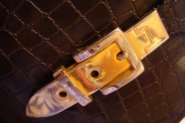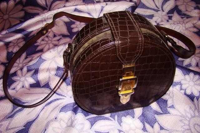 Imituota krokodilo kaili. Ruda. ne didoka. apvali. su ilgu dirzeliu. "auksiniu" uztrauktuku