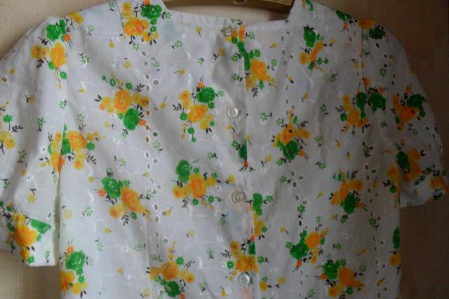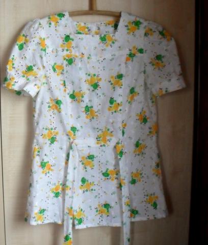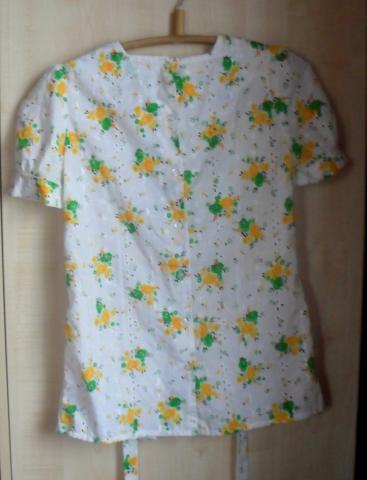 Vintažiniai marškinukai trumpomis rankovėmis, gale užsiriša. su gėlytėmis.