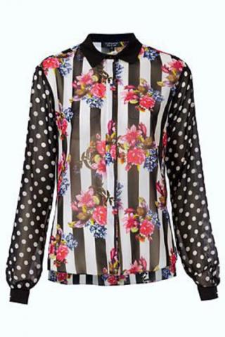 Vintažiniai šifoniniai gėlėti marškiniai
