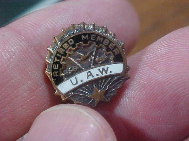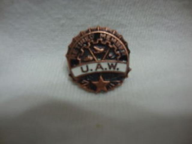 informacija galite rasti internete http://www.ebay.ie/itm/VINTAGE-U-A-W-UNITED-AUTO-WORKERS-RETIRED-MEMBER-1940S-TIE-PIN-PINBACK-RARE-/151667