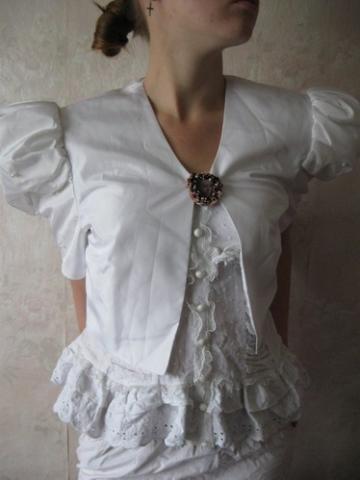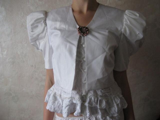 Labai pūstos rankovės, siuvinėtos bisieriu. Susisega sage, bet galima ir nesuseginėt. Dydis tinka nuo S