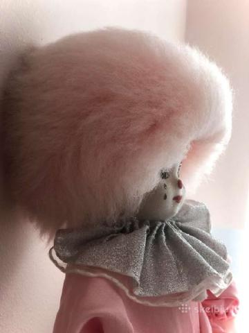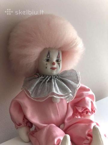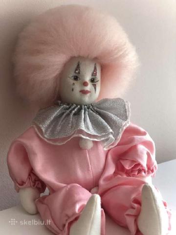 Senovinis rožinis smėlio klounas, su švelniais, puriais plaukais, 25 cm.