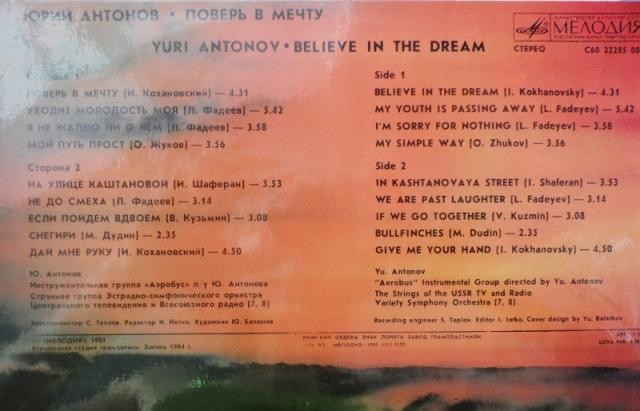 Vinyl plokštelė "Юрий Антонов - Поверь в мечту (1985)"