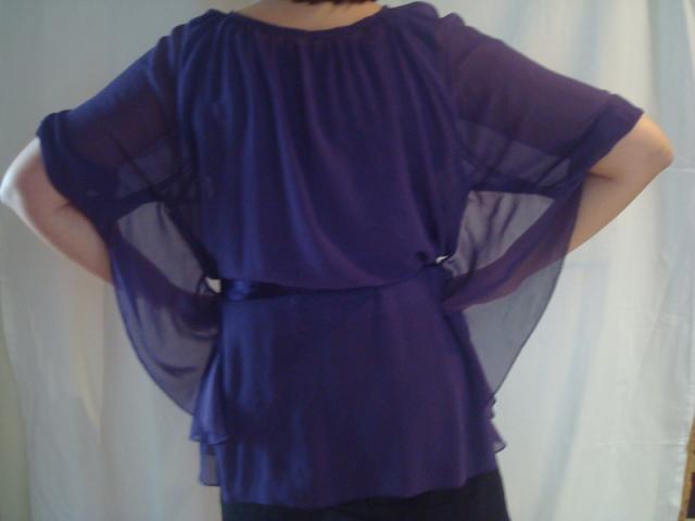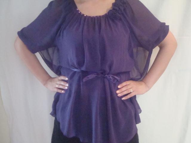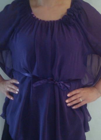 Sodrios gražios violetinės spalvos, labai grazi palaidine. Kadangi palaidine plati tai net ir S dydis gali tikti ir nesiojanciom L. Bliuzkute siektiek permatomo audinio.