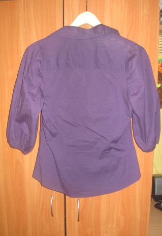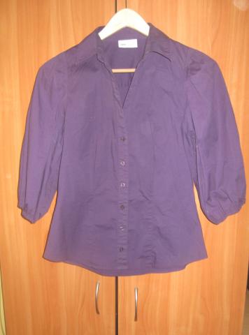 Violetinė palaidinė - marškiniai su rauktomis rankovėmis.