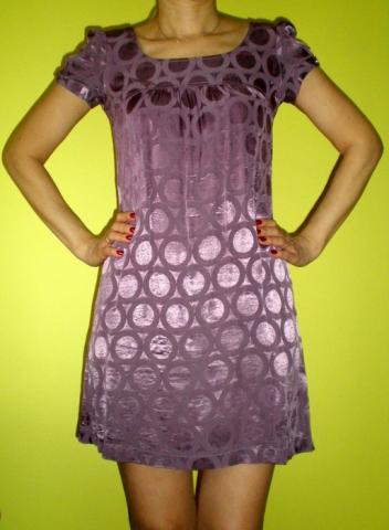 Labai graži suknelė, nugaroje padailinta iškirpte ir dviejomis sagutėmis. Rankovytės taip pat padailintos sagutėmis. Platėjančio fasono, puikiai atrodytų su dirželiu. Yra nežymių pasiburbuliavimų šonuose nuo pažasties ir viduje, tačiau estetinis vaizdas nuo to nesigadina ir matosi tik žiūrint iš labai arti. NEMAINAU. Išmatavimai: Nuo pažasties iki pažasties (juostos, esančios priekyje) ilgis - 42cm. Rankovyčių (rankos) apimtis - ~30cm.