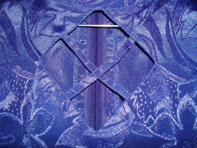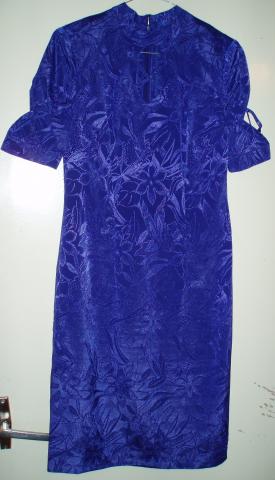 Porą kartų vilkėta šventiška suknelė panelei. Suknelę siuvo siuvėja. Priekyje ir ant rankovių - vienodi motyvai iš kryžiuotų juostelių (matyti nuotraukoje). Dešinėje pusėje - sprindžio ilgio skeltukas, nugaroje - užtrauktukas. Suknelės ilgis nuo pečių iki apačios - 95 cm, per juosmenį - 80 cm. Galiu atvežti į Šiaulius ir Mažeikius.