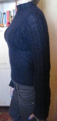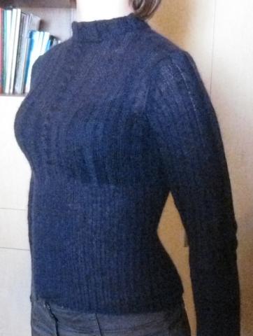 Violetinės spalvos megztinukas. Lengvas, plonas.