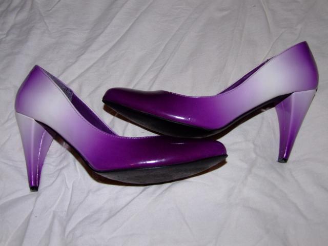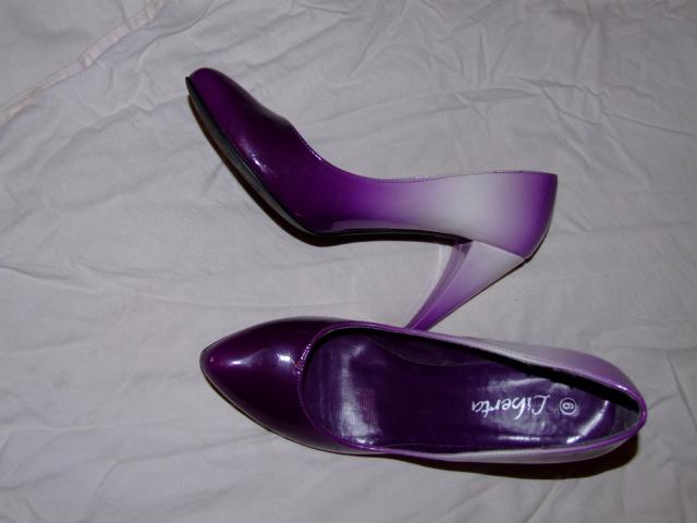 pavasariniai bateliai ,violetines pereinancios i balta ir vel violetine spalvos , naudoti nedaug , ant padu beviek nesimato ,truputy numusta nosyte pastebima ziurint is arti ,bet nemanau kad kas is taip arti i juos ziures einant :) kad pastebetu ,dydis 39 ,angliskas 6 parasyta, pirkti anglijoj