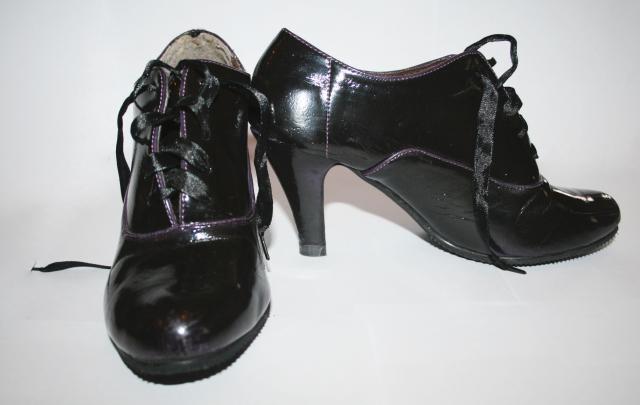 Juodai violetiniai bateliai neaukštu kulnu. Tik pakalti.
