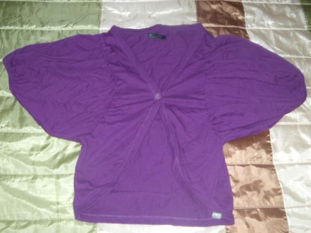 labai grazus bolero, ryskiai violetines spalvos, nuotraukoj neislygintas, todel neperduoda viso grozio. raso dydi XS, bet tinka ir S, jokiu defektu