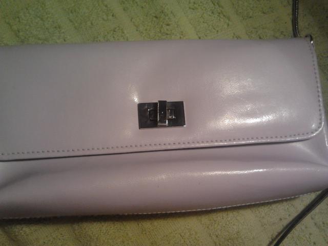 Violetinė mažytė delninukė, gali buti su geležiniu dirželiu, galima jį ir nuimti, vienas skyrelis, užtrauktuku atsisega viduje maža kišenytė.