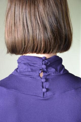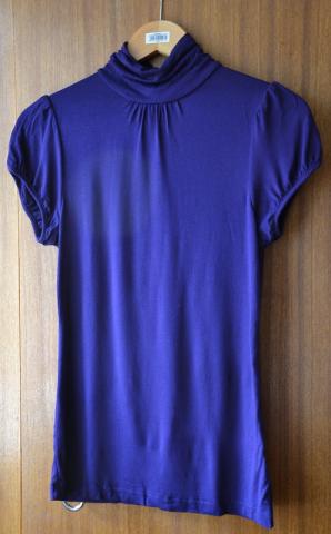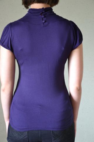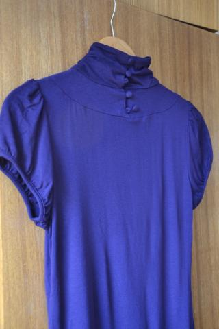Tamprus, dailiai priglunda ir puikiai išryškina kūno linijas. Stilingi paraukimai ties kaklu, rankovėmis. Medžiaga švelni, maloni prie kūno (etiketės nėra, bet, įtariu, jog medvilnė / viskozė, maišyta su elastanu) Spalva tamsiai violetinė - realybėj gerokai tamsesnė, nei išėjo fotografuojant. Kokybė puiki, tik trūksta vienos sagutės ties kaklu nugaroje.