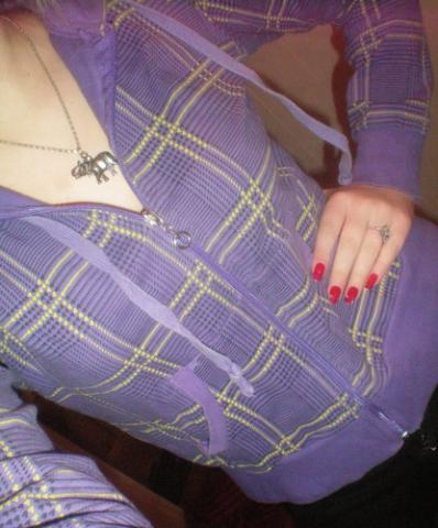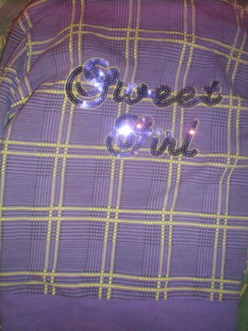 S/M Violetinis megztukas su kapišonu ir gale užrašu 'sweet girl'))
