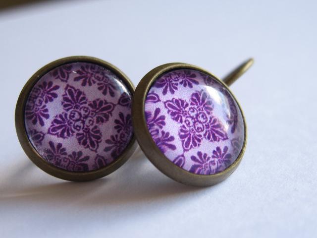 Auskariukai padaryti naudojant Collagen'o techniką. Auskariukų piešinėlis - tai paveikslėlis perkeltas ant fotopopieriaus ir uždengtas permatomu kabošonu. Auskariukų užsegimas sendinto žalvario spalvos.