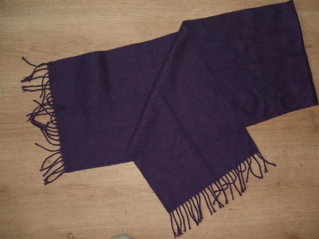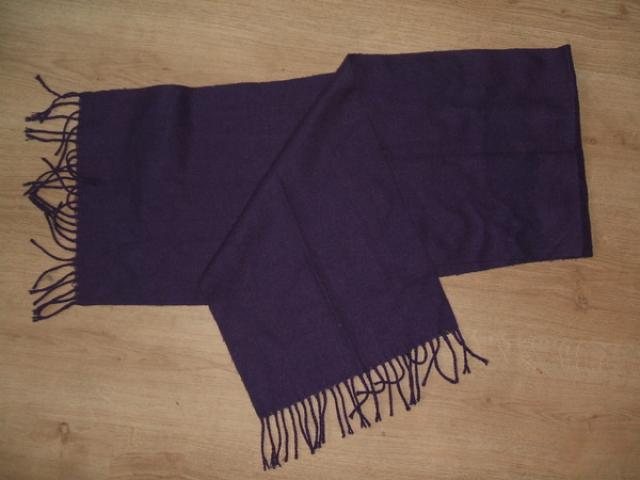 Violetinis, paprastas šalikas su kutais. Įsigijau per čia, tad tiksliai nežinau sudėties, etiketės nėra. Bet veikiausiai medvilnė ir kažkiek vilnos.