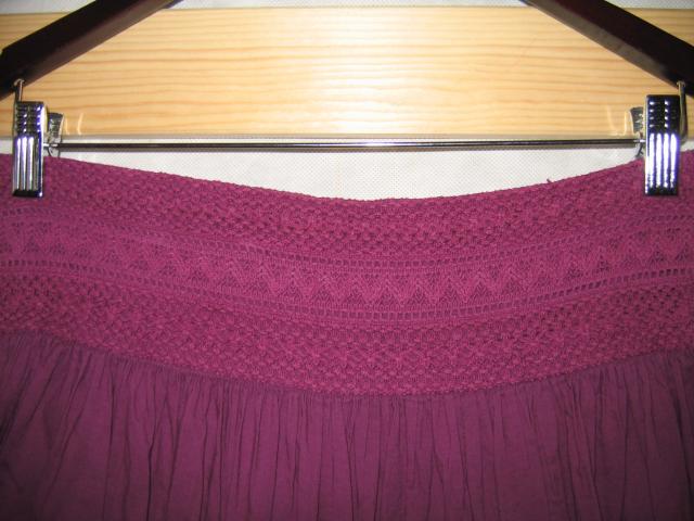 Violetinis sijonas iki kelių.