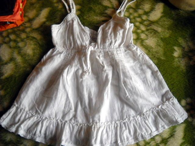 1. balta zara maikute 2. grazi palaidine sodrios spalvos, uzsirisa kaspinelis 3. labai idomi tunika, plonos medziagos 4. labai grazi palaidine-tunika, uzsirisa silkinis kaspinelis :) 5. maikute su blizguciais 6. grazus marskineliai visi rubeliai tvarkingi s-m dydzio :)