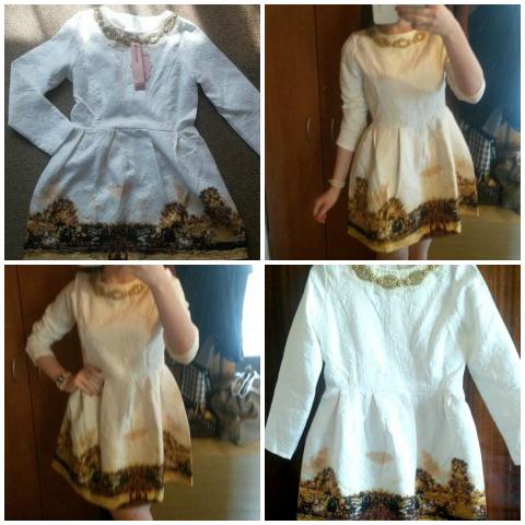 Suknelė visiškai nedėvėta, su etiketėmis. Labai graži ir puošni: viršus dekoruotas karoliukais, apačioje labai gražus ir originalus miesto vaizdas. Labai minkštos ir kūnui mielos tekstūros, be galo patogi. Dydis gana sumažintas, tad nors rašosi ant etiketės L, bet tiktų nešiojančioms S-M Kreiptis telefonu: +37067251145 arba el. paštu: rasarybkiene@gmail.com