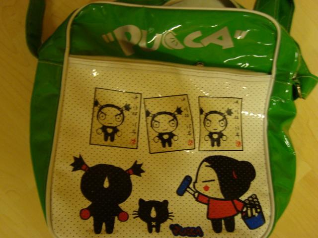 Visiškai nauja žalia tašė su anime Pucca paveikslėliai ir keičiamo ilgio rankena. Labai patogi nešiot,turi 4 skyrius.