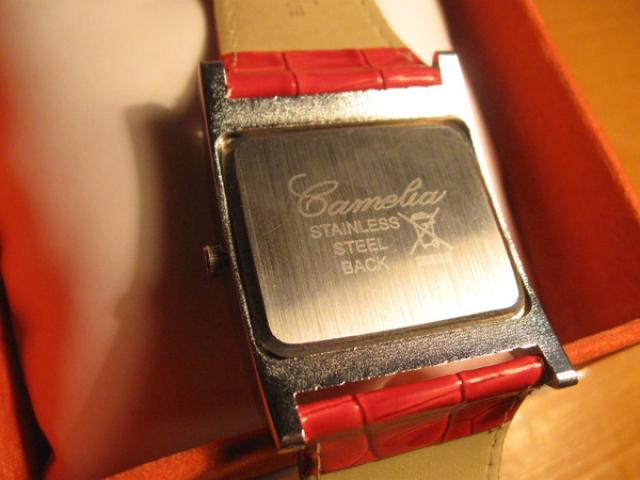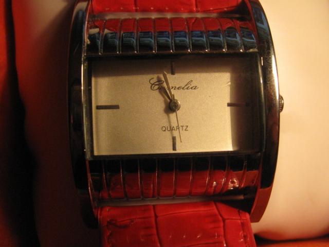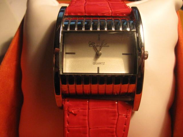 Visiškai naujas laikrodis,didelis, raudonos spalvos, dirželis lakinis, bet ne odinis. Vieną kartą buvau užsidėjusi, tad pradūriau skylutes dar dvi, nes buvo per didelis, bet tai vaizdo visiskai negadina, be jokių defektų. Tiesiog neturėjau prie ko priderinti, raudonos spalvos nelabai mėgstu :(