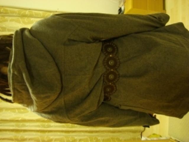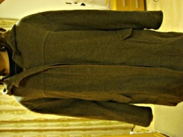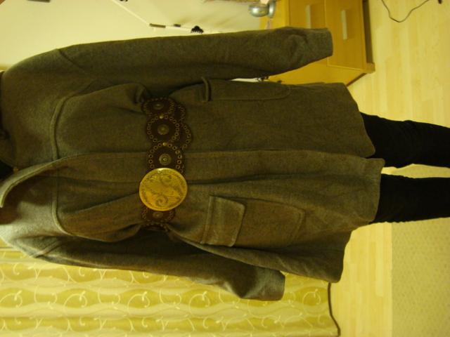 Pilkos spalvos visiškai naujas paltukas,labai gražiai atrodo surištas su kokiu nors dirželiu. Paltukas su užtrauktuku,sagom,kišenėm,kapišonu,nieko netrūksta ;D 46/48 dydžio. man buvo per didelis,tai ir mainau.
