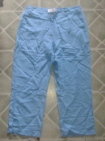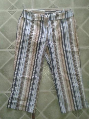 Dryžuotos kelnės - 40 dydis, baltos - 40 dydis, rudi kapriai - 42, juodos kelnės - 38, mėlynos kelnės - L/XL. + pašto išlaidos