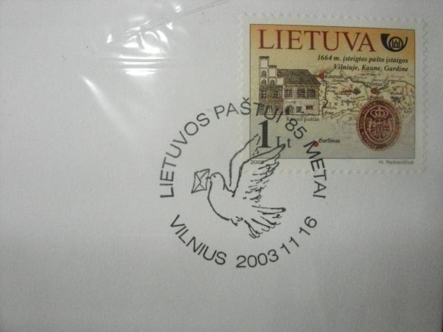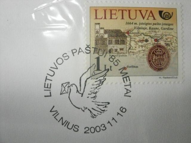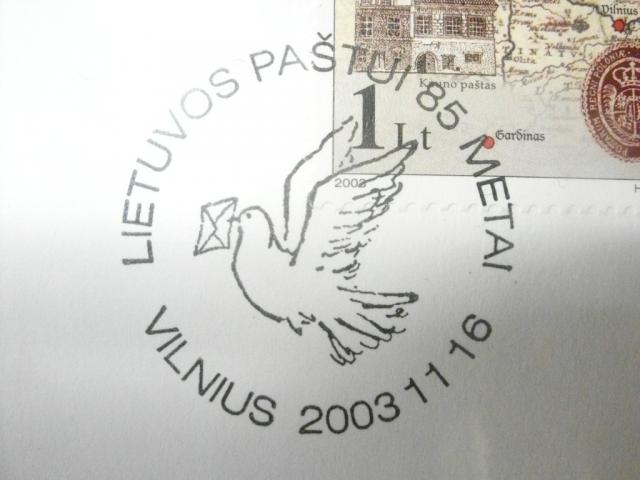Vokas skirtas Lietuvos pašto 85-čiui su šiai progai skirtu pašto ženklu ir proginiu datos spaudu.