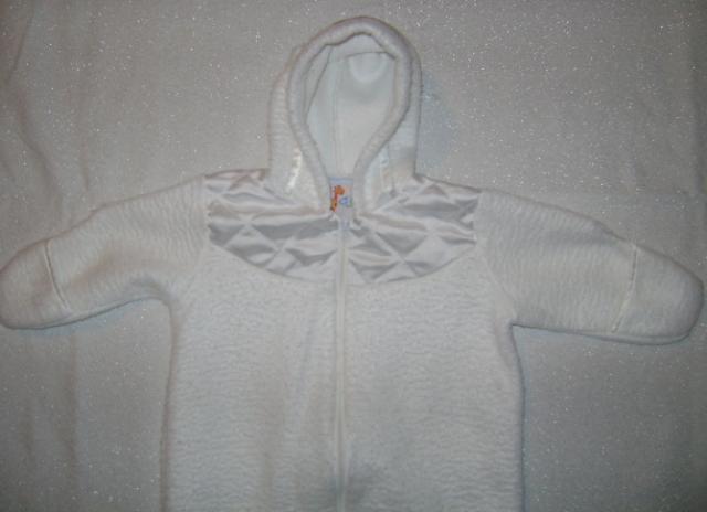 gražus, su užtrauktuku, kapišonu. Labai patogus uždėti :) tinka parsivešti naujagimį iš ligoninės :) balta neutrali spalva tiks berniukui ir mergytei :)