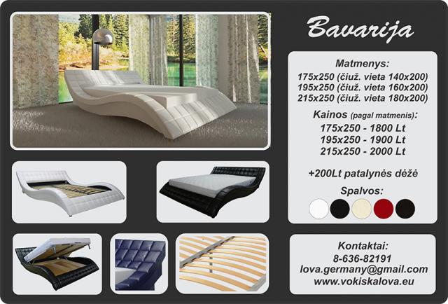 Vokiška kokybė ir modernus dizainas. Parvežu iš Vokietijos visiškai naujas gamyklines miegamojo lovas per 10-15 d.d. Pristatymo kaina 150 Lt. Minkšta eko oda aptraukta dvigulė miegamojo lova su patalynės dėže arba be jos. Kaina pagal čiužinio matmenis: 140x200 cm 1800 Lt 160x200 cm 1900 Lt 180x200 cm 2000 Lt Patalynės dėžė +200 Lt Galimos spalvos: balta, kreminė, raudona, ruda, juoda Norėdami susisiekti rašykite: lova.germany@gmail.com Daugiau informacijos www.vokiskalova.eu
