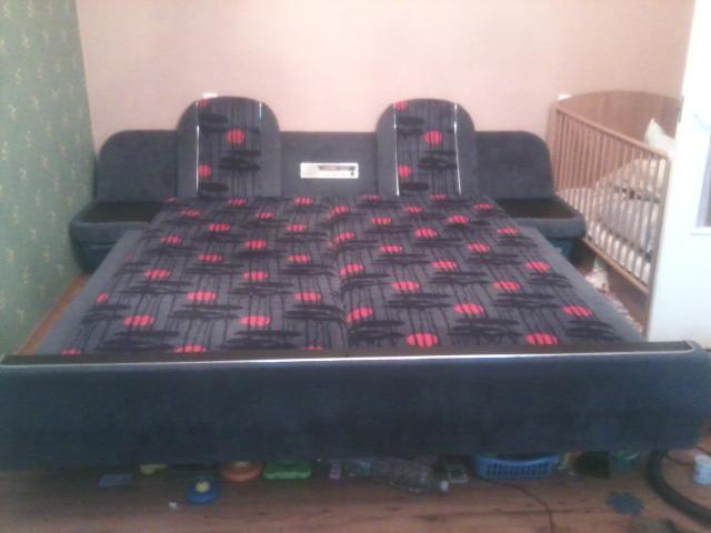 Visa lova 2.050x2.070m. Du ciuziniai, nuo kuriu nusisega uzvilkimai, vienas ciuzinys 90x190m. Yra radijas su zadintuvu. Pasikelia lovos priekis ir galas, uzsifiksuoja. Po apacia susideda patalyne.