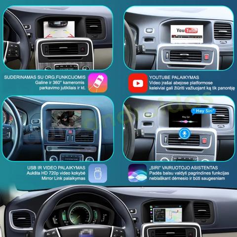 APRAŠYMAS: CARPLAY, ANDROID AUTO integracija VOLVO automobiliams nuo 2015 metų. Šis nuostabus įrenginys išsaugos gamyklines multimedijas, jų funkcijas ir padarys jas dar funkcionalesnes, nei bet kada! Nesvarbu kokia bebūtų originali sistema ir multimedija sujungę Apple ar Android telefonus, žiūrėkite aukštos kokybės HD 720p filmus, Youtube, naudokitės navigacijos programomis, skambučio funkcija, „Siri“ ir daugelių kitų programų. Greitai ir patogiai keiskite Android arba originalią sistemą, tiesiog kelias