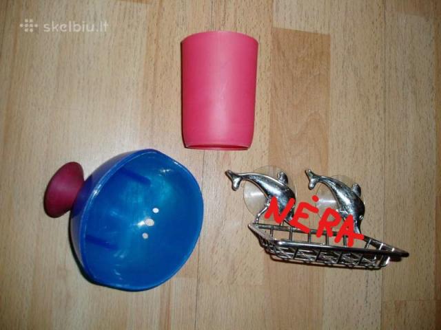 Silikoninė kepuraitė 2€,kita 50 ct, Natūralaus pluošto plaušinė 2€, kitos po 1€, Skalbimo kamuoliukas 1€, Muilinė plastikinė mėlyna 1€,rausva 30ct,uždaroma 1€, Pemza 4€ naujas indelis 50 ct
